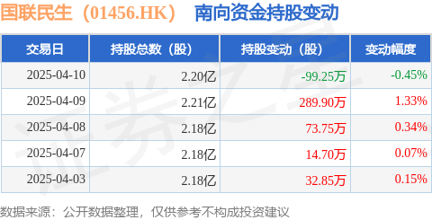 证券之星消息,4月10日南向资金减持99.25万股国联民生(01456.HK)。近5个交易日中,获南向资金增持的有4天,累计净增持311.95万股。近20个交易日中,获南向资金增持的有14天,累计净增持923.3万股。截至目前,南向资金持有国联民生(01456.HK)2.2亿股,占公司已发行普通股的49.78%。