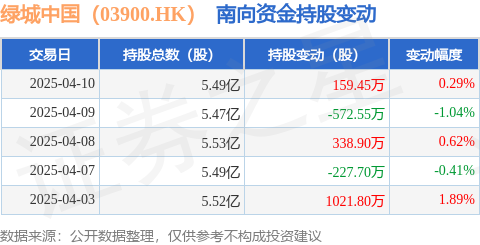 证券之星消息,4月10日南向资金增持159.45万股绿城中国(03900.HK)。近5个交易日中,获南向资金增持的有3天,累计净增持719.9万股。近20个交易日中,获南向资金减持的有10天,累计净减持595.37万股。截至目前,南向资金持有绿城中国(03900.HK)5.49亿股,占公司已发行普通股的21.59%。