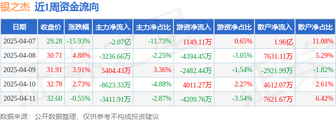 资金流向数据方面,本周银之杰主力资金合计净流出3.06亿元,游资资金合计净流出5926.28万元,散户资金合计净流入3.65亿元。本周资金流向一览见下表: