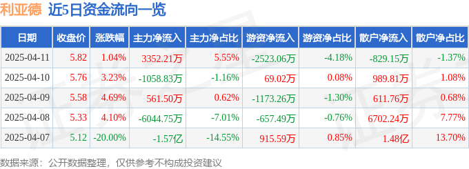 4月11日的资金流向数据方面,主力资金净流入3352.21万元,占总成交额5.55%,游资资金净流出2523.06万元,占总成交额4.18%,散户资金净流出829.15万元,占总成交额1.37%。