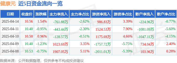 4月14日的资金流向数据方面,主力资金净流出761.88万元,占总成交额2.62%,游资资金净流入986.83万元,占总成交额3.39%,散户资金净流出224.96万元,占总成交额0.77%。