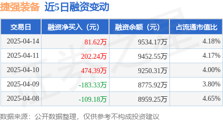 证券之星消息,4月14日,捷强装备(300875)融资买入524.42万元,融资偿还442.8万元,融资净买入81.62万元,融资余额9534.17万元,近3个交易日已连续净买入累计758.25万元。