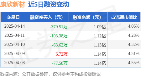证券之星消息,4月14日,康欣新材(600076)融资买入109.56万元,融资偿还489.07万元,融资净卖出379.51万元,融资余额1.09亿元。