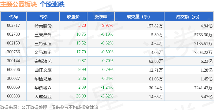 证券之星消息,4月15日主题公园板块较上一交易日下跌0.27%,大连圣亚领跌。当日上证指数报收于3267.66,上涨0.15%。深证成指报收于9858.1,下跌0.27%。主题公园板块个股涨跌见下表: