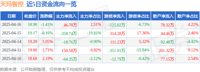证券之星消息,截至2025年4月16日收盘,天玛智控(688570)报收于18.9元,下跌1.41%,换手率0.53%,成交量9856.0手,成交额1857.98万元。