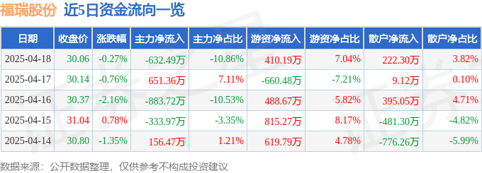 4月18日的资金流向数据方面,主力资金净流出632.49万元,占总成交额10.86%,游资资金净流入410.19万元,占总成交额7.04%,散户资金净流入222.3万元,占总成交额3.82%。