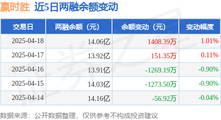 证券之星消息,4月18日,赢时胜(300377)融资买入8093.82万元,融资偿还6689.22万元,融资净买入1404.6万元,融资余额14.03亿元。