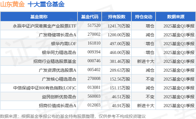 重仓山东黄金的前十大公募基金请见下表:
