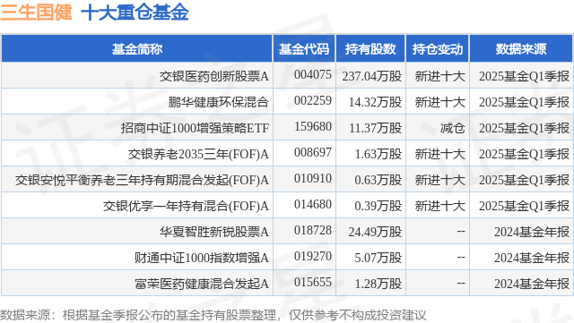 重仓三生国健的公募基金请见下表: