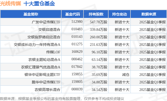 重仓光线传媒的前十大公募基金请见下表:
