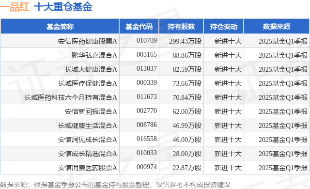 重仓一品红的前十大公募基金请见下表:
