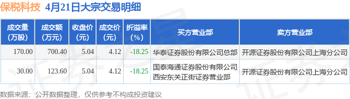证券之星消息,4月21日保税科技发生大宗交易,交易数据如下: