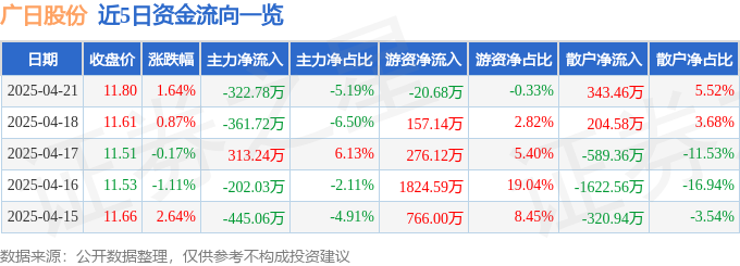 4月21日的资金流向数据方面,主力资金净流出322.78万元,占总成交额5.19%,游资资金净流出20.68万元,占总成交额0.33%,散户资金净流入343.46万元,占总成交额5.52%。