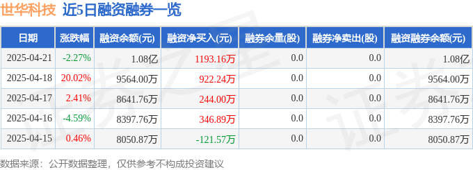 世华科技融资融券信息显示,融资方面,当日融资买入3032.11万元,融资偿还1838.95万元,融资净买入1193.16万元,连续3日净买入累计2359.4万元。融券方面,融券卖出0.0股,融券偿还0.0股,融券余量0.0股,融券余额0.0万元。融资融券余额1.08亿元。