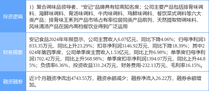 该股为调味品,食品概念热股,当日调味品概念上涨0.95%,食品概念上涨0.69%。