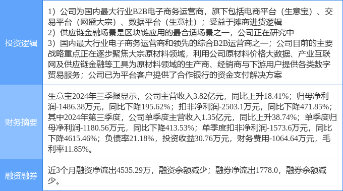 证券之星消息,生 意 宝4月22日涨停收盘,收盘价19.84元。该股于9点54分涨停,未打开涨停,截止收盘封单资金为8184.99万元,占其流通市值1.64%。