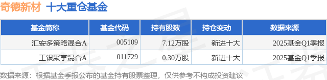 重仓奇德新材的公募基金请见下表: