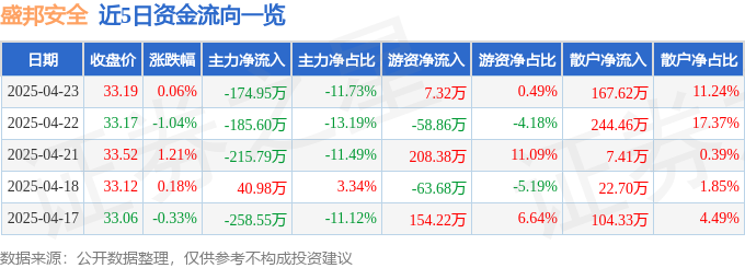 证券之星消息,截至2025年4月23日收盘,盛邦安全(688651)报收于33.19元,上涨0.06%,换手率1.42%,成交量4484.0手,成交额1491.29万元。
