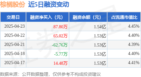 证券之星消息,4月23日,棕榈股份(002431)融资买入153.15万元,融资偿还65.35万元,融资净买入87.8万元,融资余额1.54亿元,近20个交易日中有12个交易日出现融资净买入。