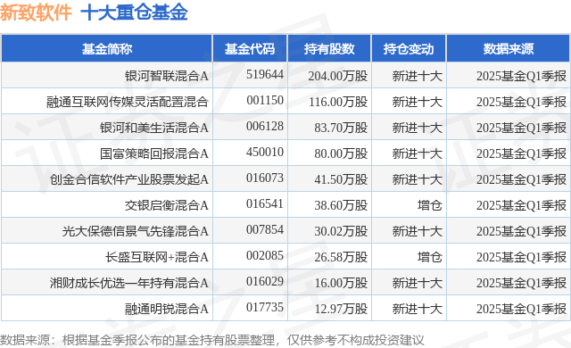 重仓新致软件的前十大公募基金请见下表: