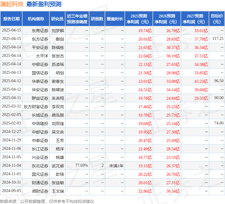 证券之星数据中心根据近三年发布的研报数据计算,东北证券武芃睿研究员团队对该股研究较为深入,近三年预测准确度均值为77.69%,其预测2025年度归属净利润为盈利19.13亿,根据现价换算的预测PE为43.46。