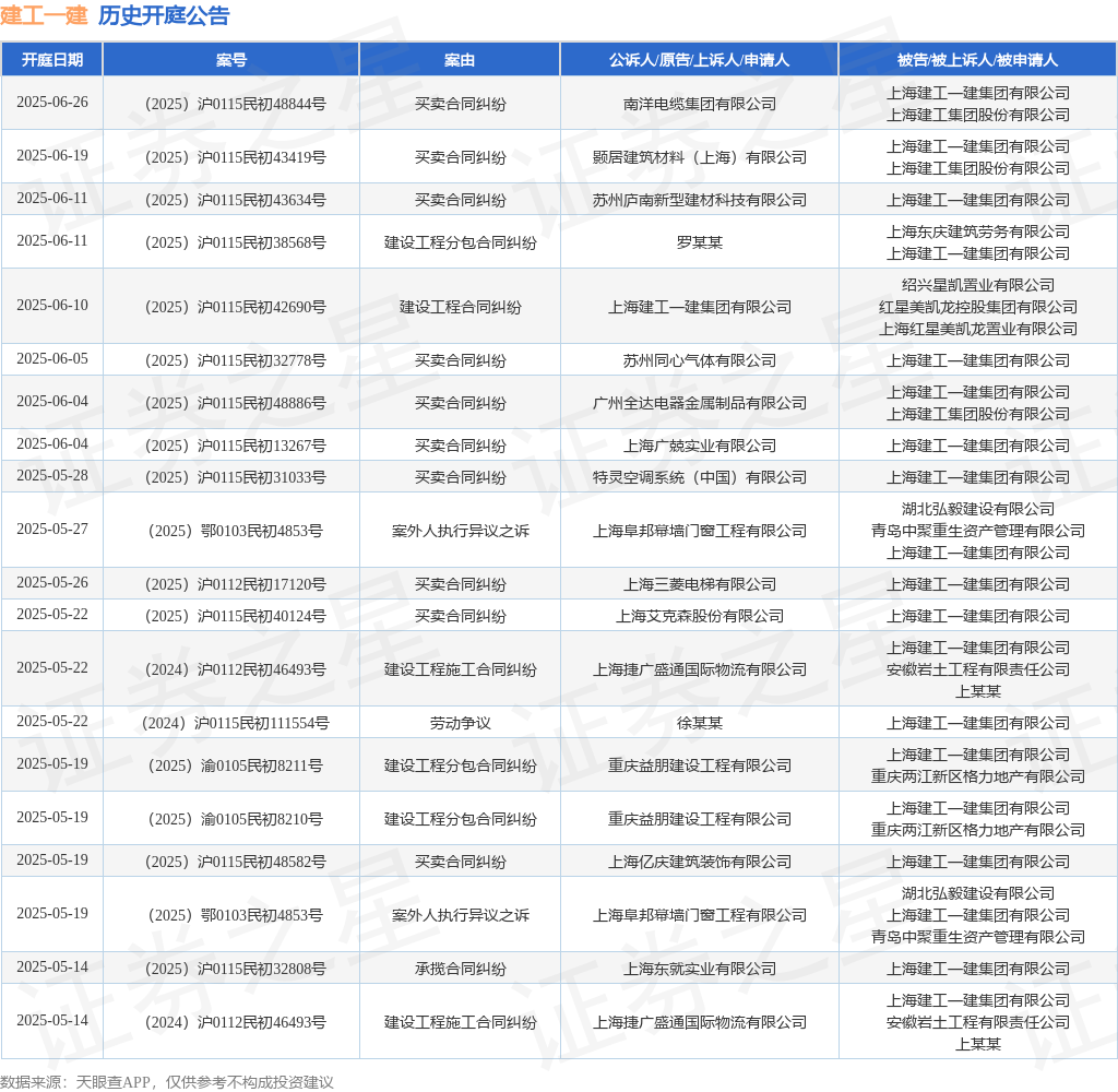 证券之星消息,根据天眼查APP显示,近日公布了一则上海建工一建集团有限公司作为被告/被上诉人的开庭公告,详细内容如下: