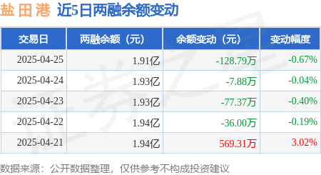 证券之星消息,4月25日,盐 田 港(000088)融资买入181.62万元,融资偿还315.36万元,融资净卖出133.74万元,融资余额1.91亿元。
