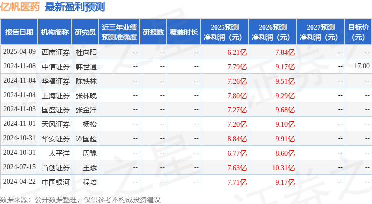最新盈利预测明细如下: