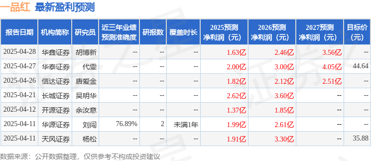 最新盈利预测明细如下: