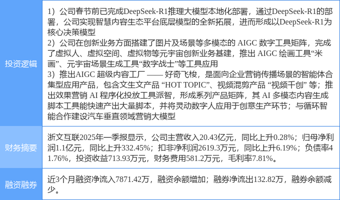 该股为DeepSeek概念股,多模态,AIGC概念概念热股,当日DeepSeek概念股概念上涨3.12%,多模态概念上涨2.7%,AIGC概念概念上涨2.52%。