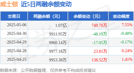 证券之星消息,5月6日,威士顿(301315)融资买入1463.74万元,融资偿还715.04万元,融资净买入748.7万元,融资余额1.07亿元。