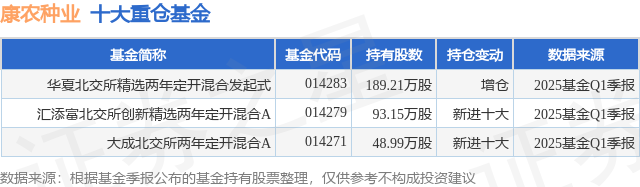 根据2025基金Q1季报公募基金重仓股数据,重仓该股的公募基金共3家,其中持有数量最多的公募基金为华夏基金的华夏北交所精选两年定开混合发起式。华夏北交所精选两年定开混合发起式目前规模为7.23亿元,最新净值2.1738(5月6日),较上一交易日上涨2.82%,近一年上涨134.65%。该公募基金现任基金经理为顾鑫峰。顾鑫峰在任的基金产品包括:华夏成长精选6个月定开混合A,管理时间为2020年6月12日至今,期间收益率为9.36%;华夏核心制造混合A,管理时间为2024年12月23日至今,期间收益率为-0.69%。