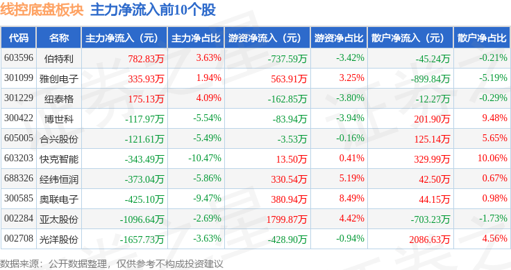 从资金流向上来看,当日线控底盘板块主力资金净流出1.36亿元,游资资金净流入4926.24万元,散户资金净流入8671.79万元。线控底盘板块个股资金流向见下表:
