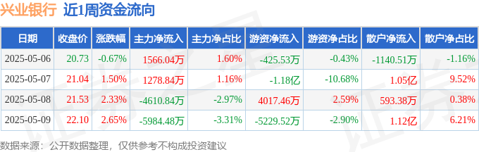 资金流向数据方面,本周兴业银行主力资金合计净流出7750.45万元,游资资金合计净流出1.35亿元,散户资金合计净流入2.12亿元。本周资金流向一览见下表: