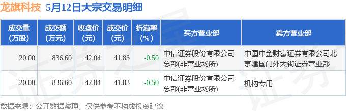 证券之星消息,5月12日龙旗科技发生大宗交易,交易数据如下: