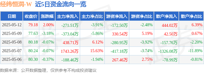 5月12日的资金流向数据方面,主力资金净流出271.51万元,占总成交额3.91%,游资资金净流出172.5万元,占总成交额2.48%,散户资金净流入444.02万元,占总成交额6.39%。
