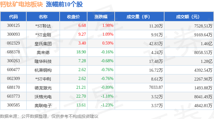 从资金流向上来看,当日钙钛矿电池板块主力资金净流出8.1亿元,游资资金净流入1.79亿元,散户资金净流入6.31亿元。钙钛矿电池板块个股资金流向见下表: