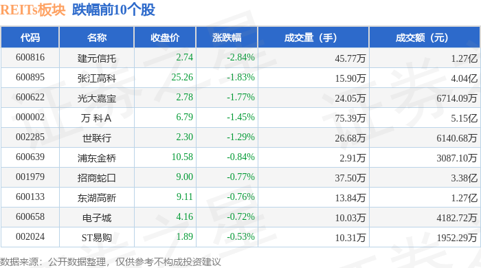 证券之星消息,5月15日REITs板块较上一交易日下跌0.76%,建元信托领跌。当日上证指数报收于3380.82,下跌0.68%。深证成指报收于10186.45,下跌1.62%。REITs板块个股涨跌见下表: