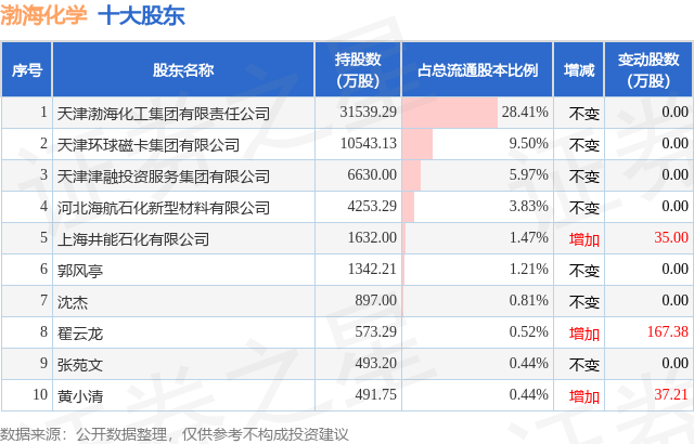 根据渤海化学2025年一季报公布的十大股东详情如下:
