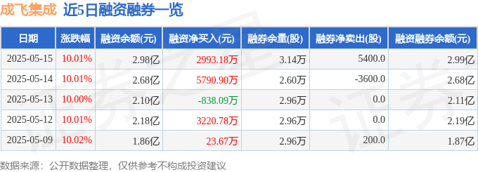 证券之星消息,截至2025年5月15日收盘,成飞集成(002190)报收于32.63元,上涨10.01%,已连续涨停7天,换手率12.09%,成交量43.38万手,成交额14.1亿元。