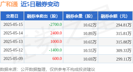 融券方面,当日融券卖出0.0股,融券偿还2700.0股,融券净买入2700.0股,融券余量10.62万股。