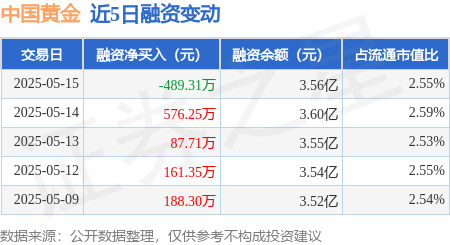 证券之星消息,5月15日,中国黄金(600916)融资买入511.89万元,融资偿还1001.2万元,融资净卖出489.31万元,融资余额3.56亿元。