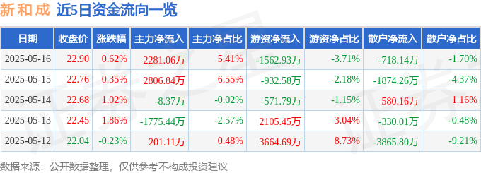 5月16日的资金流向数据方面,主力资金净流入2281.06万元,占总成交额5.41%,游资资金净流出1562.93万元,占总成交额3.71%,散户资金净流出718.14万元,占总成交额1.7%。