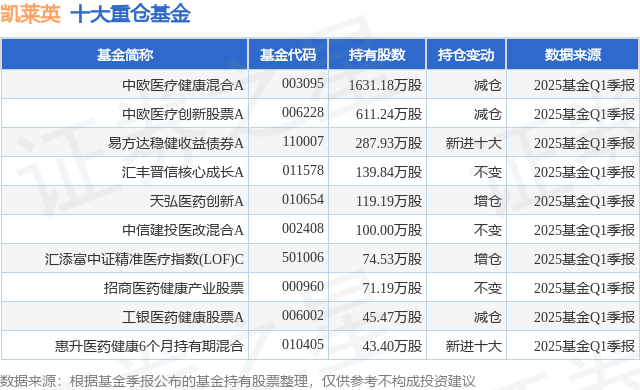 重仓凯莱英的前十大公募基金请见下表: