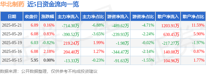 证券之星消息,截至2025年5月21日收盘,华北制药(600812)报收于6.09元,上涨0.16%,换手率0.99%,成交量17.01万手,成交额1.04亿元。