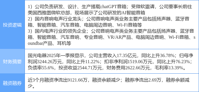 该股为ChatGPT,黑色家电,智能音箱概念热股,当日ChatGPT概念上涨1.01%,黑色家电概念上涨0.7%,智能音箱概念上涨0.09%。