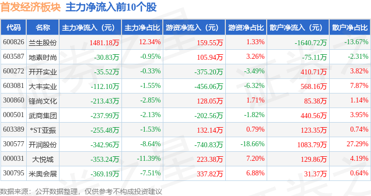 从资金流向上来看,当日首发经济板块主力资金净流出2.18亿元,游资资金净流出1833.51万元,散户资金净流入2.36亿元。首发经济板块个股资金流向见下表: