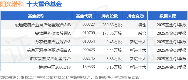 根据2025基金Q1季报公募基金重仓股数据,重仓该股的公募基金共6家,其中持有数量最多的公募基金为融通基金的融通健康产业灵活配置混合A/B。融通健康产业灵活配置混合A/B目前规模为20.35亿元,最新净值2.504(5月22日),较上一交易日下跌1.46%,近一年下跌9.5%。该公募基金现任基金经理为万民远。万民远在任的基金产品包括:融通鑫新成长混合A,管理时间为2021年10月8日至今,期间收益率为22.56%;融通价值成长混合A,管理时间为2022年7月18日至今,期间收益率为13.58%;融通医疗保健行业混合A/B,管理时间为2023年3月15日至今,期间收益率为-27.45%。