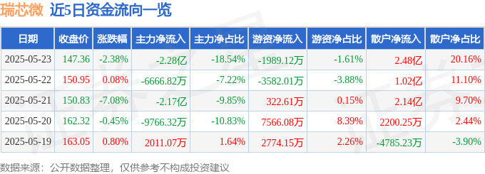 证券之星消息,截至2025年5月23日收盘,瑞芯微(603893)报收于147.36元,下跌2.38%,换手率1.98%,成交量8.29万手,成交额12.32亿元。
