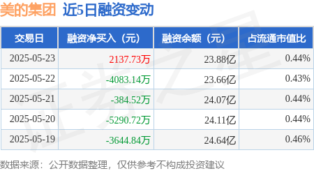 证券之星消息,5月23日,美的集团(000333)融资买入1.29亿元,融资偿还1.08亿元,融资净买入2137.73万元,融资余额23.88亿元。